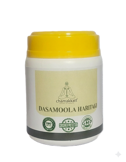 Classical Ayurvedic formulation combining Dasamoola (group of 10 medicinal roots) with Haritaki (Terminalia chebula) Known...