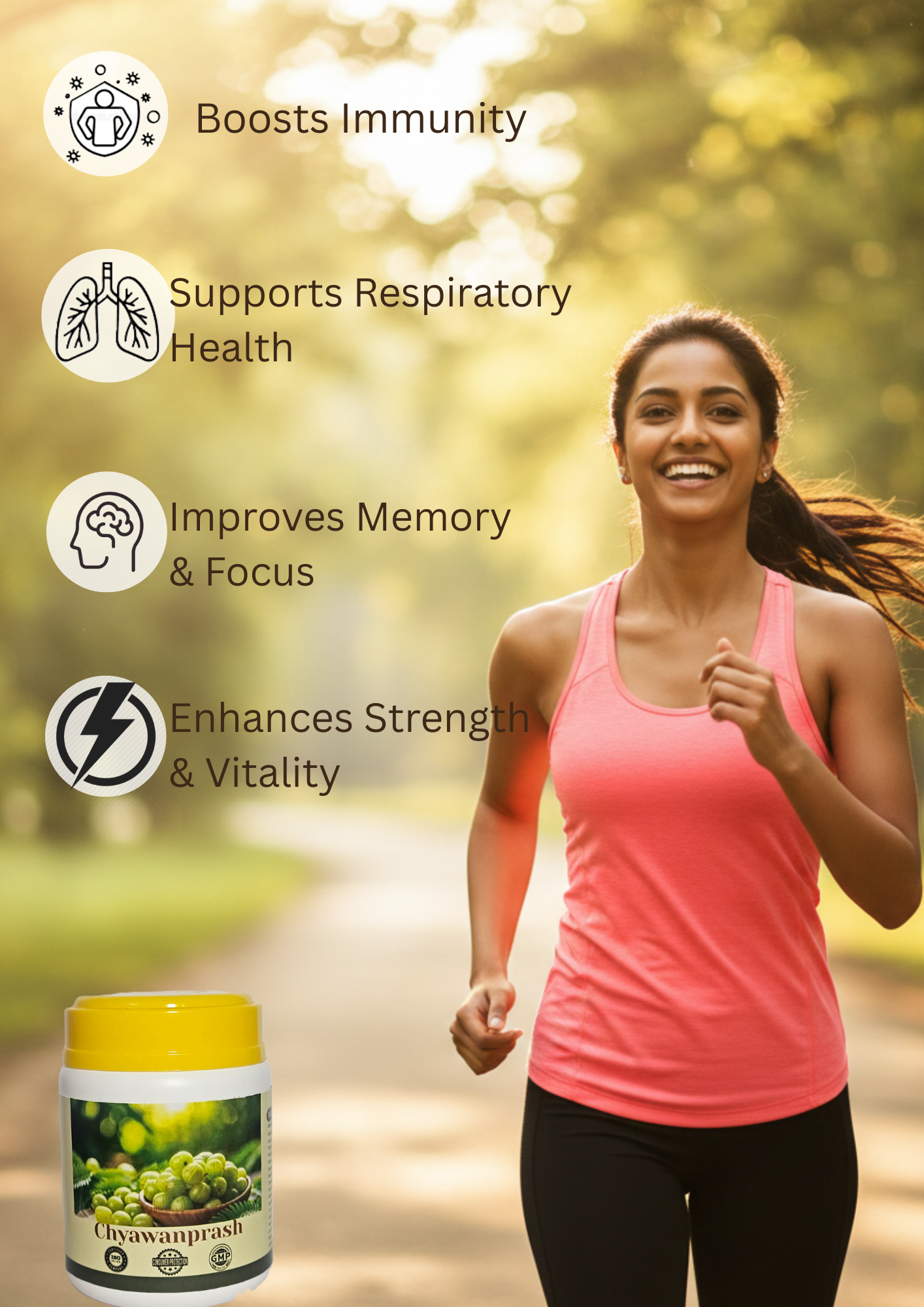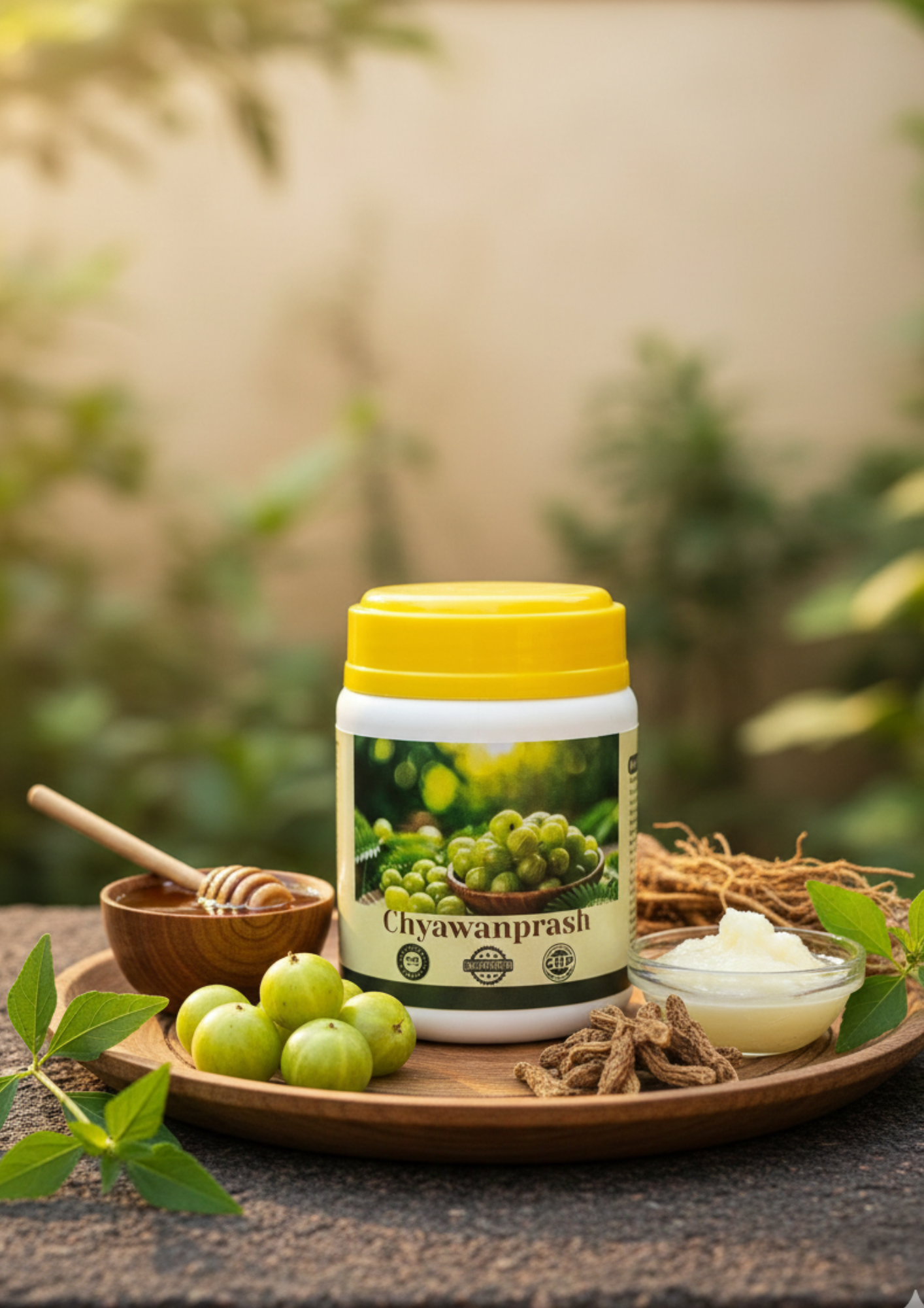 Chamakkatt's Chyawanaprash is a traditional Ayurvedic herbal jam crafted from a blend of over 40 potent herbs, with Amla (Indian gooseberry) as its primary ingredient. This nutrient-rich formulation is designed to rejuvenate the body, enhance immunity, and promote overall vitality.