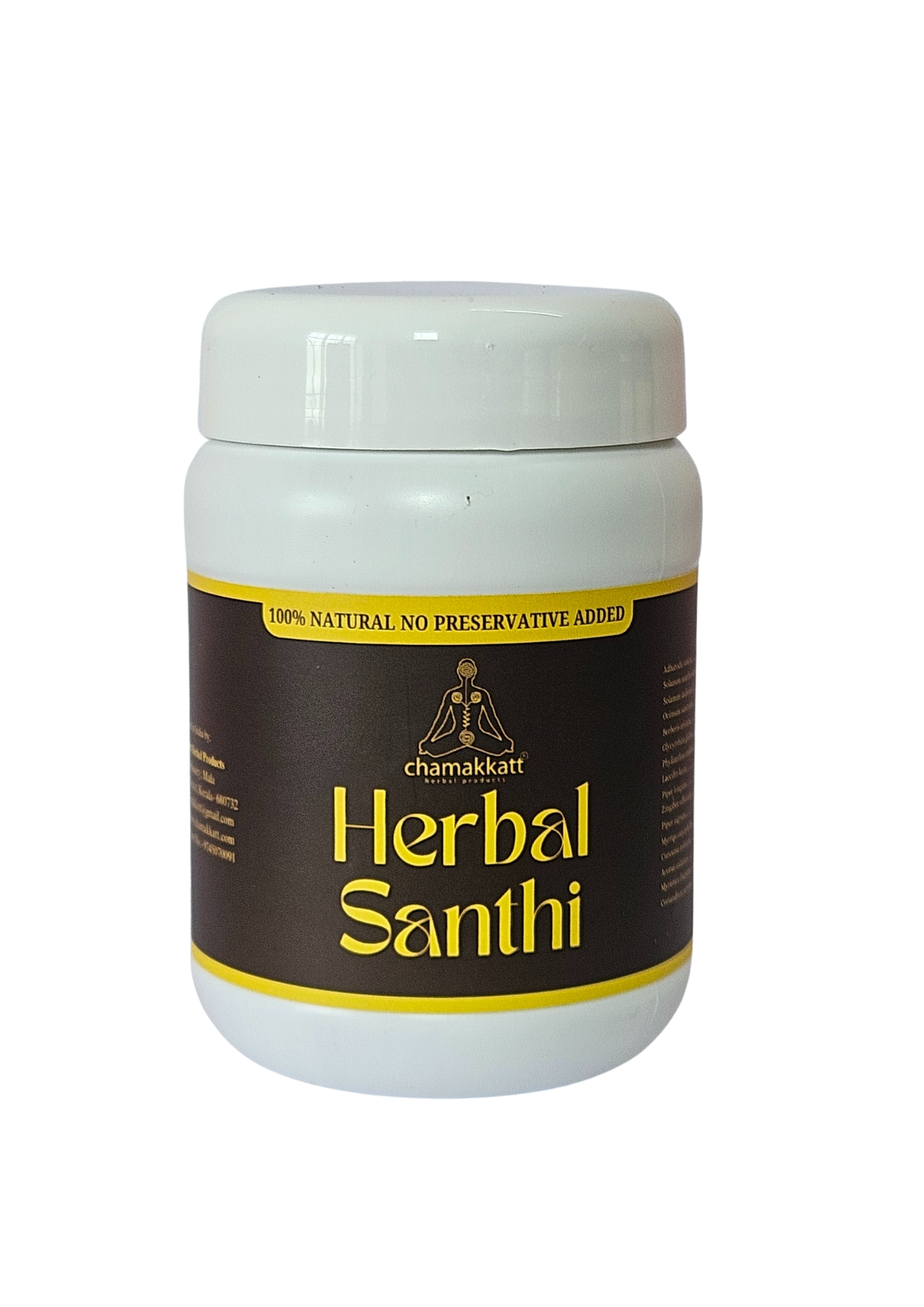 Chamakkatt's Herbalshanthi is a traditional Ayurvedic formulation crafted to promote digestive health and overall well-being. This herbal supplement aids in balancing the body's natural processes, supporting a healthy digestive system.