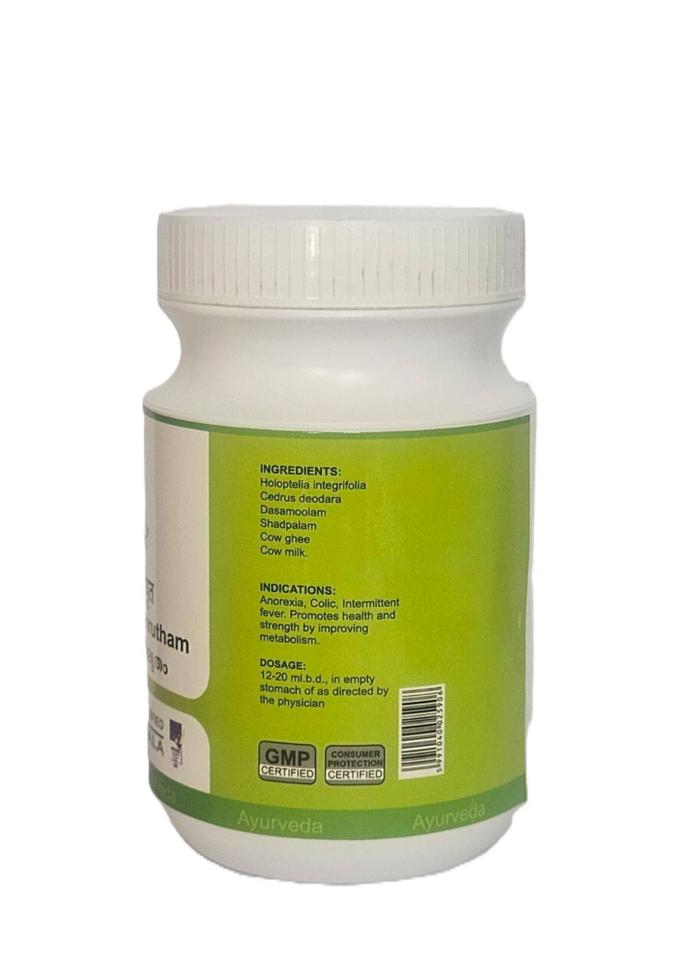 Inthukantham ghritam is a classical Ayurvedic formulation mentioned in Ashtanga Hridayam. It is a medicated ghee prepared with multiple rejuvenating and digestive herbs. It is mainly used to improve digestion, strengthen immunity, and restore vitality in weak or debilitated individuals.