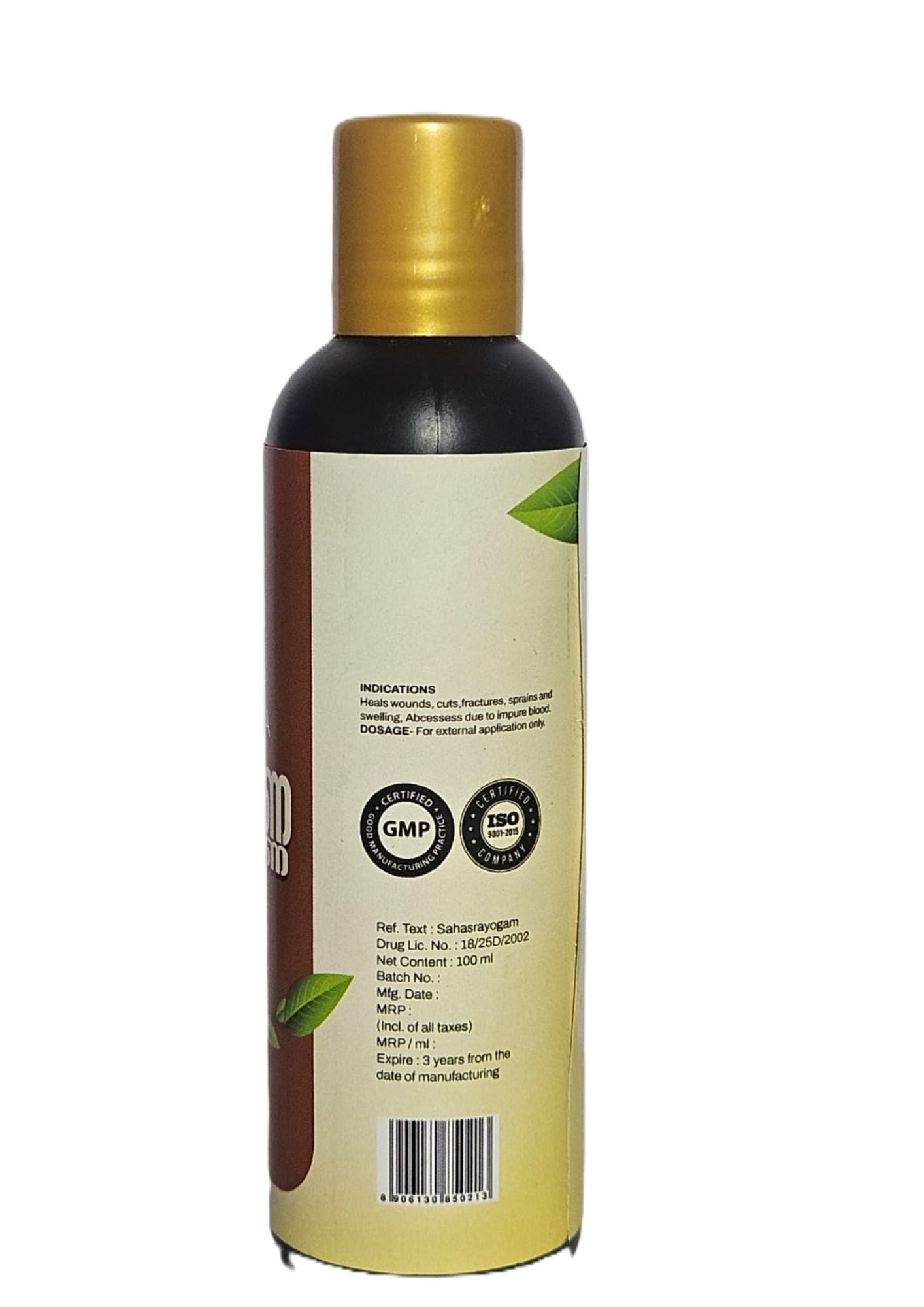 Chamakkatt's Murivenna Oil is a traditional Ayurvedic formulation renowned for its healing properties. Crafted with a blend of potent herbs in a coconut oil base, it is designed to support the body's natural recovery processes.